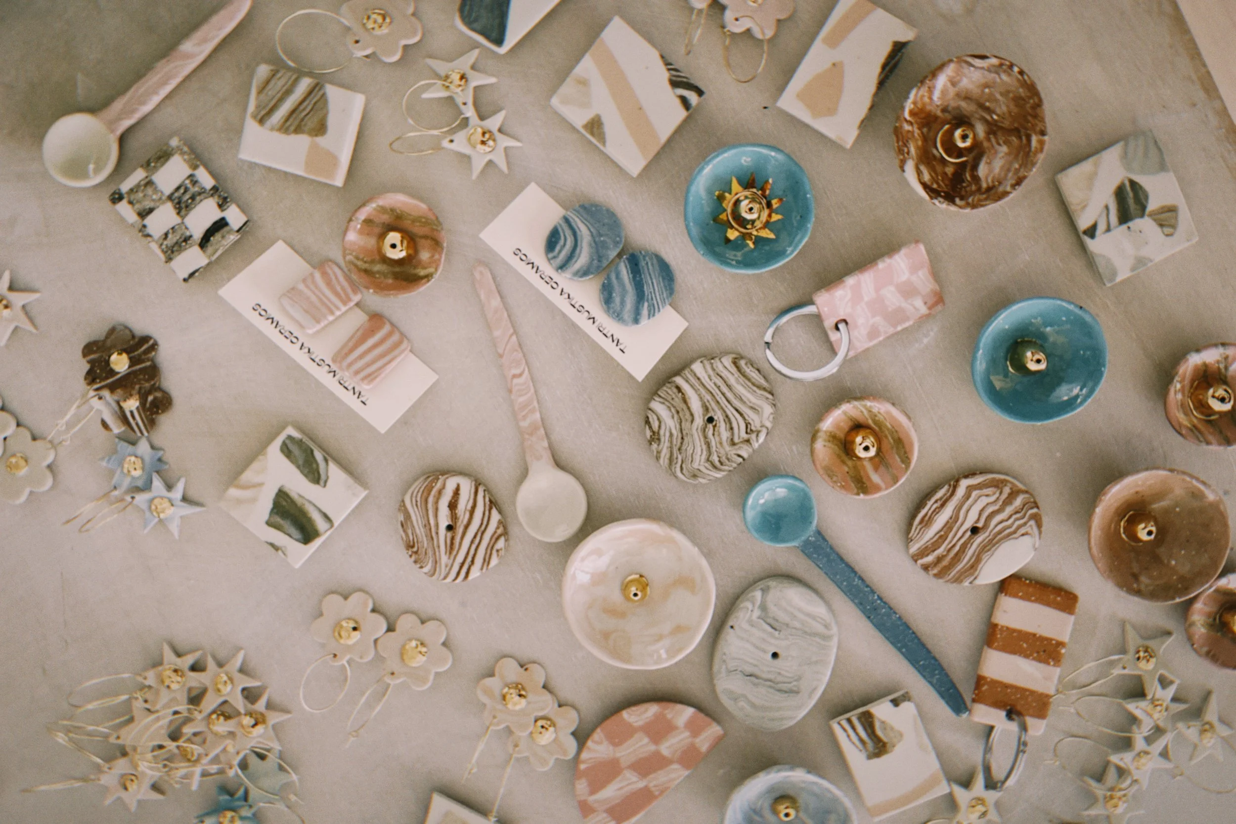 Each bon bon has one item of ceramic treasure inside. The bon bons include ceramics magnets, earrings, hairclips, salt spoons, brooches, keyrings and incense holders. Of course they also include funny hats, silly jokes, a question and a charade!